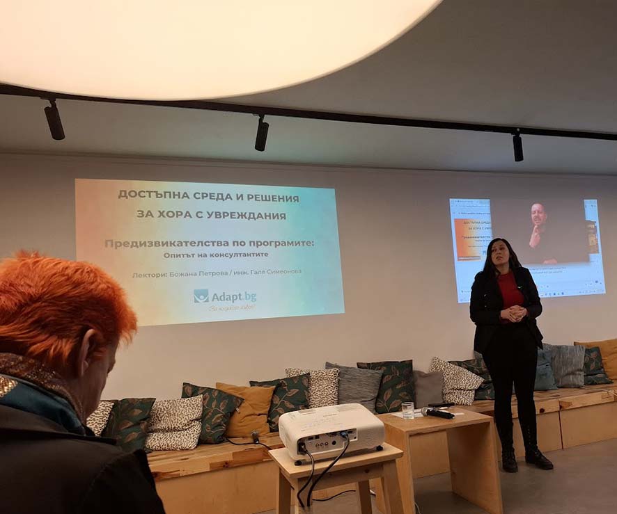 „Достъпна архитектурна среда“: програмата на Агенция за хората с увреждания за осигуряване на достъп до културни, исторически и спортни обекти, стопанисвани от държавни и неправителствени организации, беше представена от г-жа Тони Николова.
