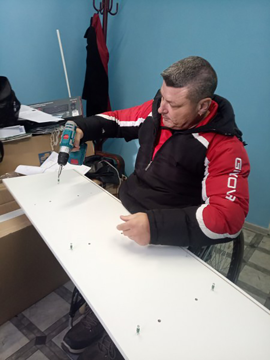 - в клуба на хората с увреждания гр. Сливен, се преоборудва с нова офис техника, климатик и обзавеждане на съществуващо работно място, като на наетият служител - координатор на Област Сливен, назначен по трудов договор към СИБ е осигурена благоприятна среда, която компенсира дефицитите от увреждането му.