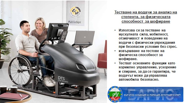 Показаха се снимки на тренажор за подготовка на шофьори хора с инвалидни колички, каквито се ползват в Европа.