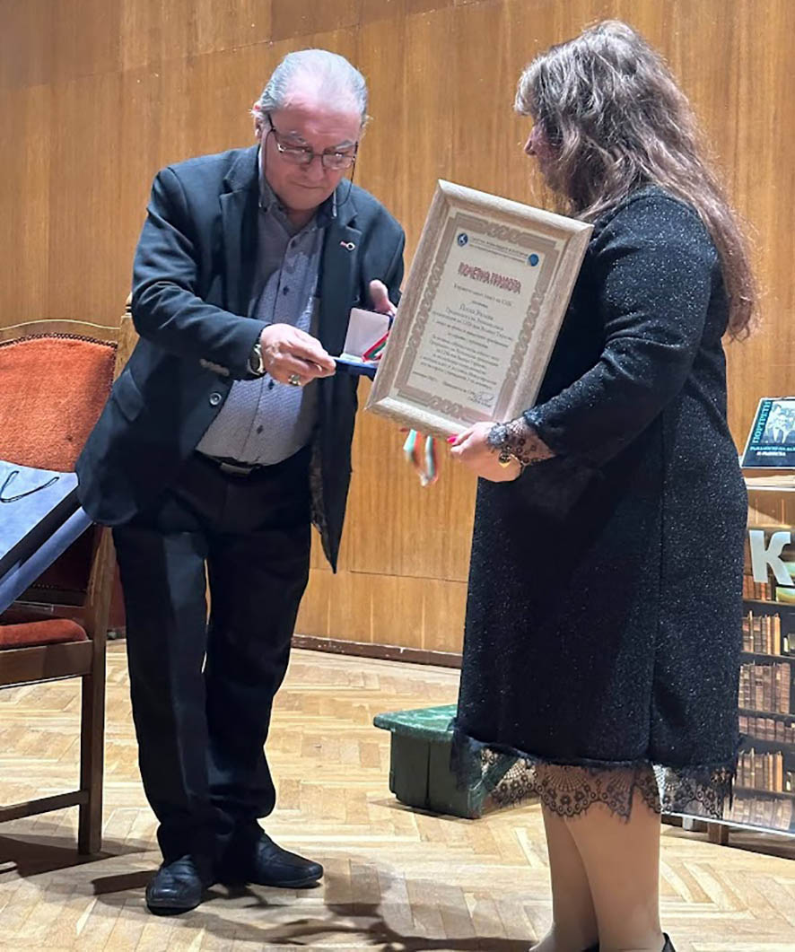 Председателят на СИБ г-н Георги Колев удостои г-жа Росица Димитрова с Почетна грамота и плакет за принос в социалното приобщаване на хората с увреждания, които бяха връчени от г-н Георгиев. Признанието е за ползотворно сътрудничество с организация на СИБ – Велико Търново, за последователна социална политика, подкрепа и добро партньорство.