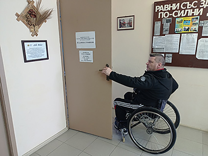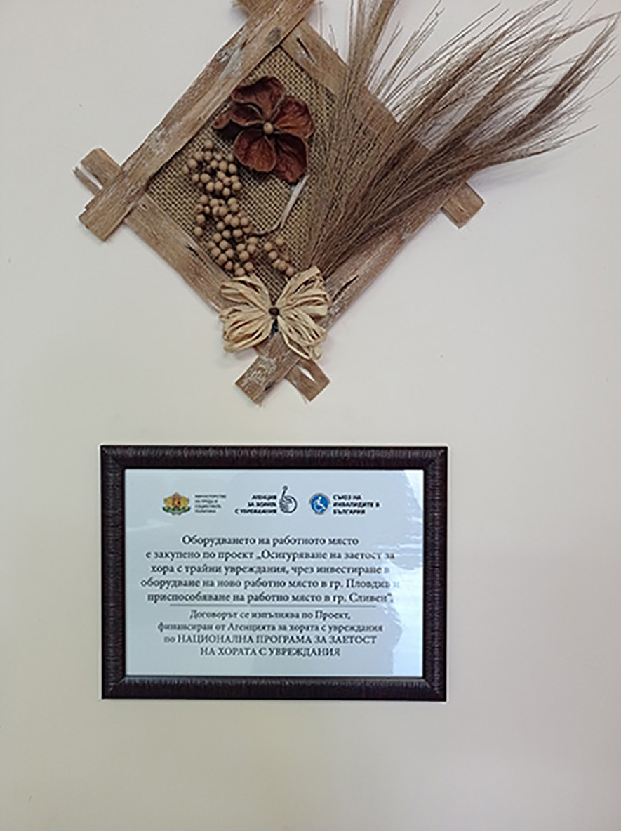 - в клуба на хората с увреждания гр. Сливен, се преоборудва с нова офис техника, климатик и обзавеждане на съществуващо работно място, като на наетият служител - координатор на Област Сливен, назначен по трудов договор към СИБ е осигурена благоприятна среда, която компенсира дефицитите от увреждането му.