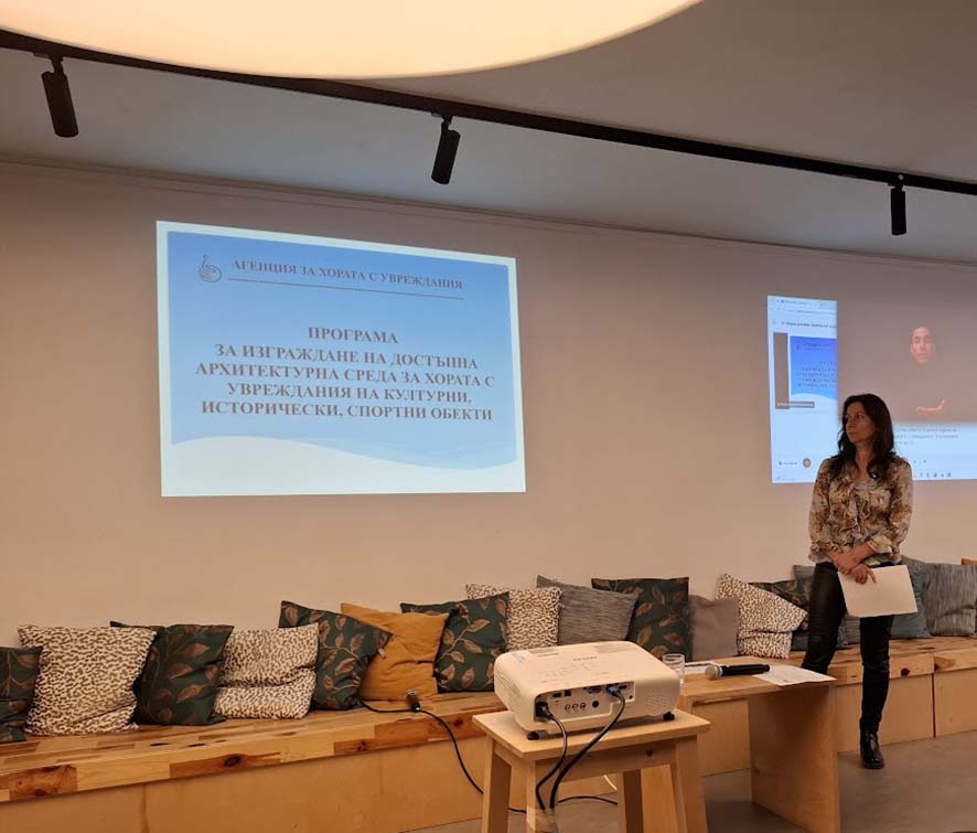 • „Достъпна архитектурна среда“: програмата на Агенция за хората с увреждания за осигуряване на достъп до културни, исторически и спортни обекти, стопанисвани от държавни и неправителствени организации, беше представена от г-жа Тони Николова.