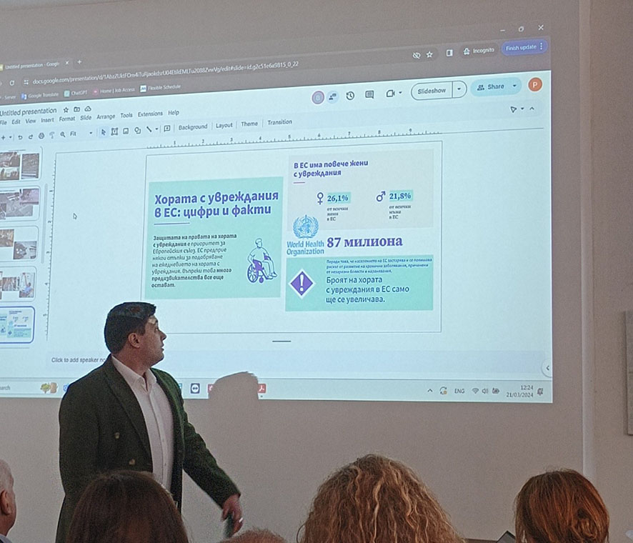 Г-жа Велева от Балкански институт по труда и социалната политика отбеляза, че все повече предприемачи и предприятия за хора с увреждания се ориентират към високотехнологични изделия, които подобряват работната среда за лицата с увреждания. 22-годишният студент от Пловдивския университет Мартин Тотев, представи разработена от неговата компания антитреморна технология, която напълно контролира тремора на ръката. Високо технологични изделия на различни компании представиха и Любомир Василев, Боян Шейтанов, Петко Стоев, Марин Димов и Румен Спространов. Марин Байчев от МТСП разказа, че България е финансирана по Плана за възстановяване по проект за високо технологични помощни средства. Става дума за 11 групи изделия на обща стойност 24 млн. лв. Разработена е методика за самооценка на кандидатстващите лица и така ще се извърши подбора на лицата. Ще бъдат одобрени 3300 лица с увреждания. Разработва се система за обобщаване на резултатите от самооценките, като с това се цели да се изключи субективния фактор. Сформирани са и комисии към РДСП, които ще се обучават да оценяват резултатите и да дават препоръки за лицата, които да получат тези високо технологични помощни средства. Обект на Проекта са деца и лица в трудоспособна възраст, желаещи да участват на пазара на труда. След приключване на проекта ще се направи анализ на резултатите и ще се направят предложения за промени в нормативната уредба за ползване на тези изделия.