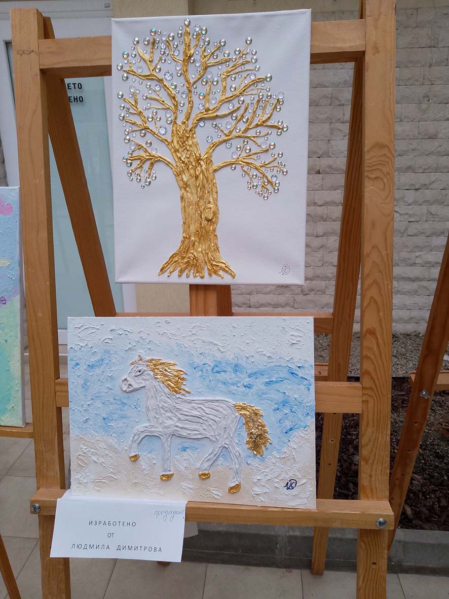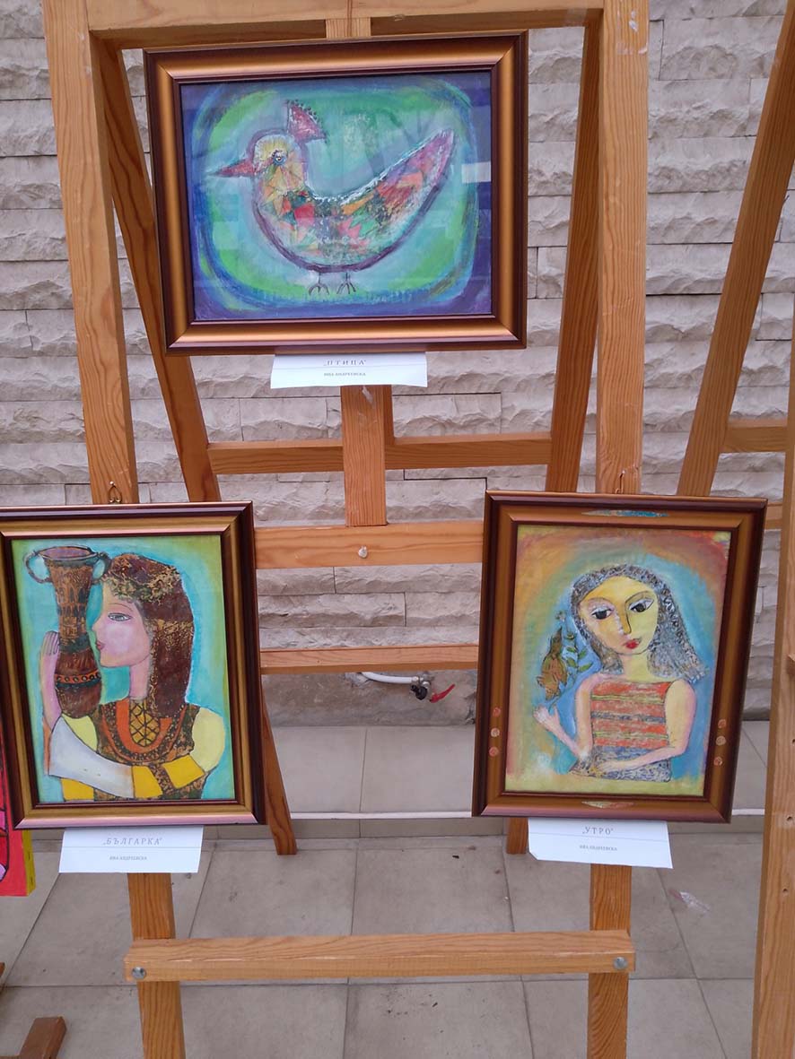 В изложбата взеха участие младите художници Ива Андреевска и Людмила Димитрова, с по 6 картини. При изработката им е използвана много специална технология. Те привлякоха вниманието на посетителите и се продадоха веднага.